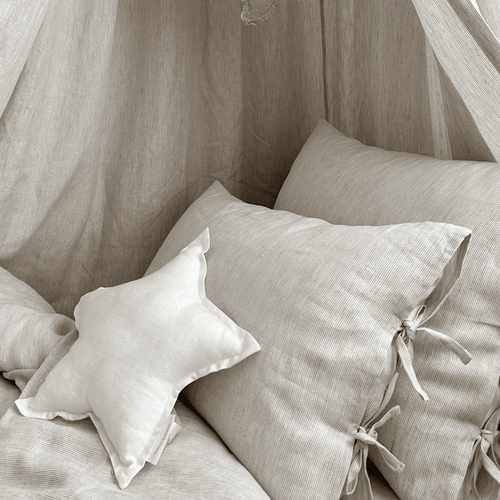 Junior linen bedding with beige stripes is made of an extraordinary fabric, which is characterized by antibacterial, anti-fungal and anti-allergic properties. It is an ideal choice for children and allergy sufferers.