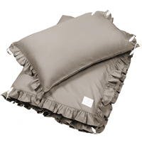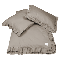 A set of children's bedding with Taupe filling decorated with a frill. Taupe baby bedding is made of the highest quality satin cotton.