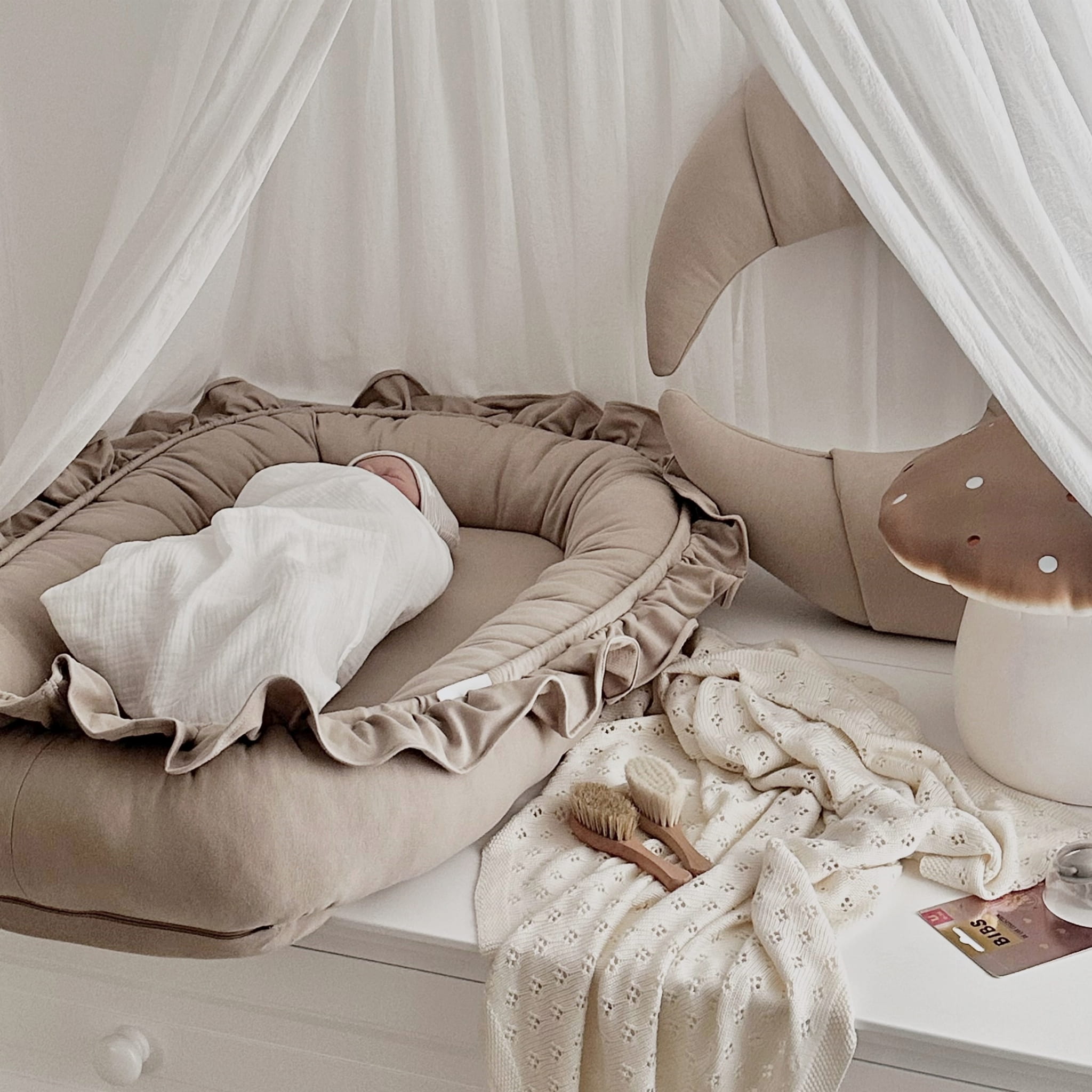 Baby nest with a frill is a great element of a children's room and a must have in newborn layette!