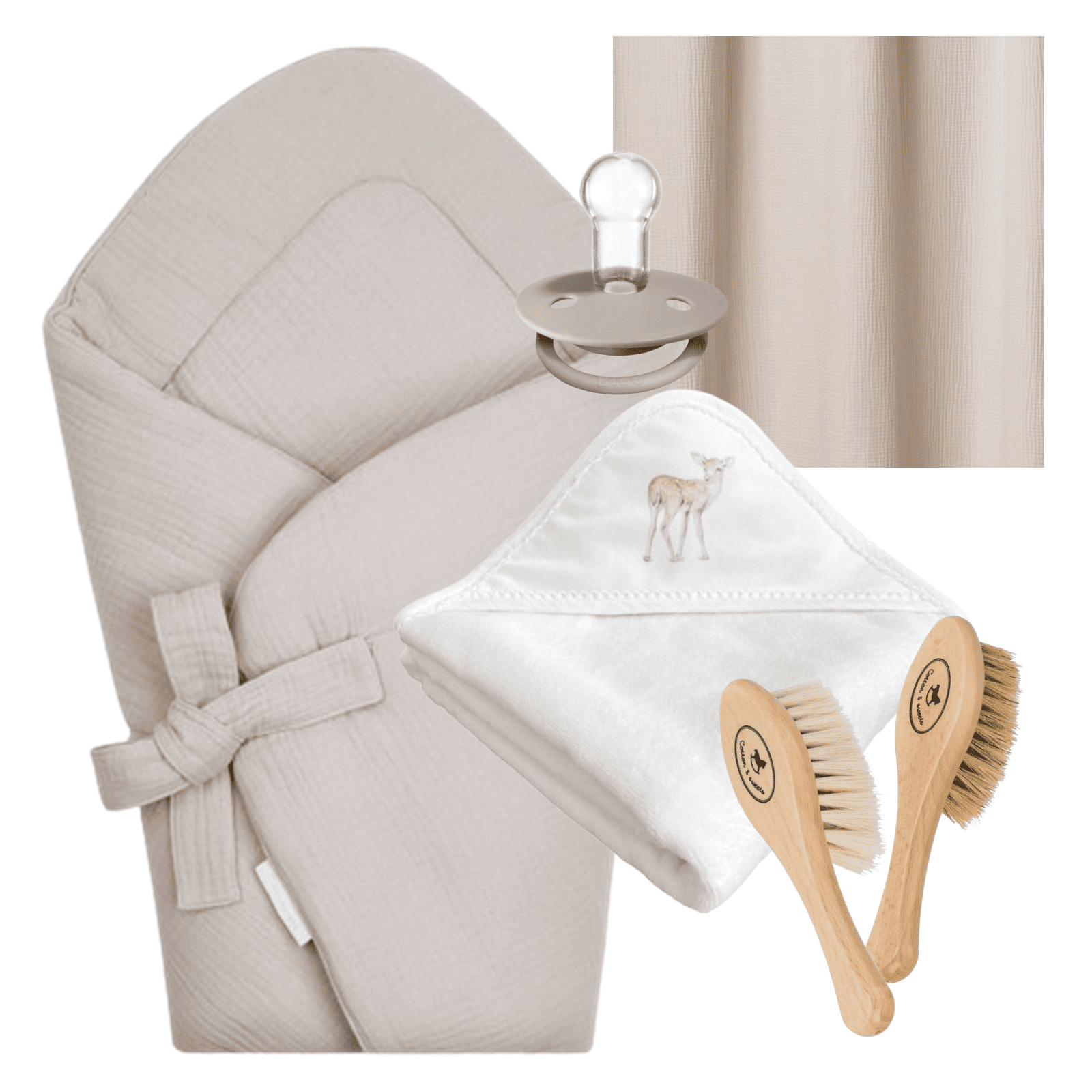 Zestaw niemowlęcy z sarenką Beżowy składający się z sześciu produktów ułatwi opiekę nad dzieckiem i zadba o bezpieczeństwo i komfort Maleństwa.