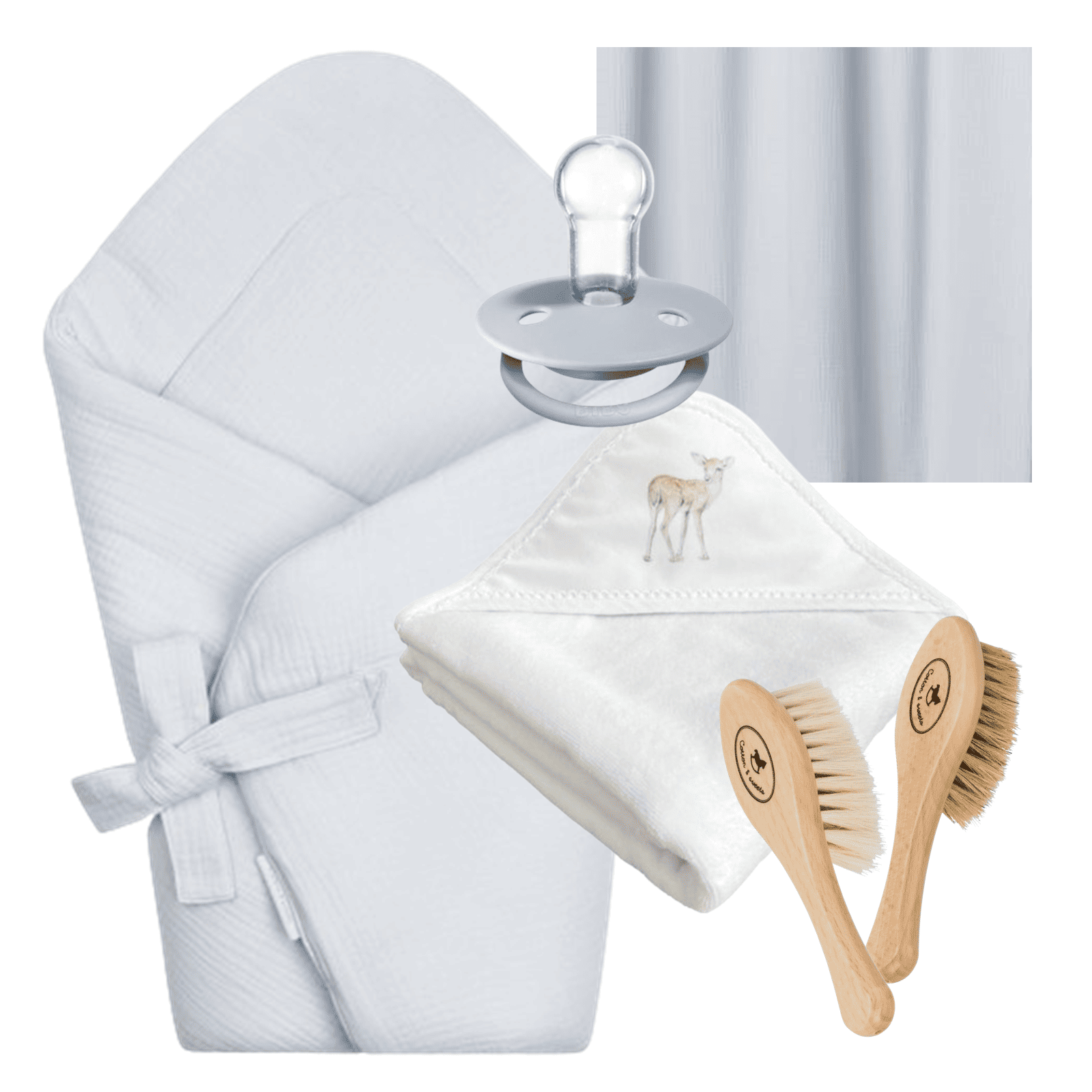 Zestaw niemowlęcy z sarenką Błekitny składający się z sześciu produktów ułatwi opiekę nad dzieckiem i zadba o bezpieczeństwo i komfort Maleństwa.